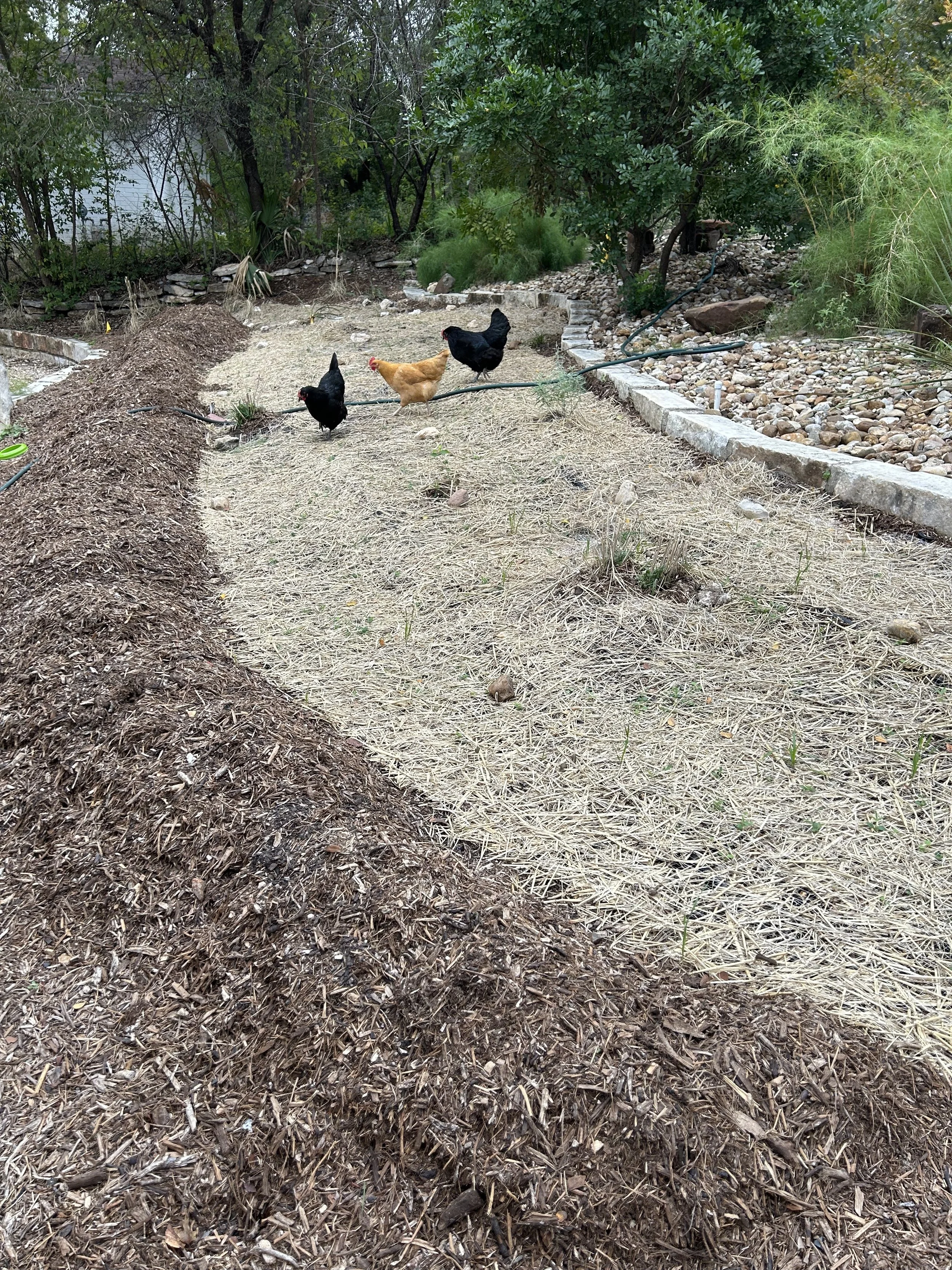 A neighbor’s chickens came to visit after planting.