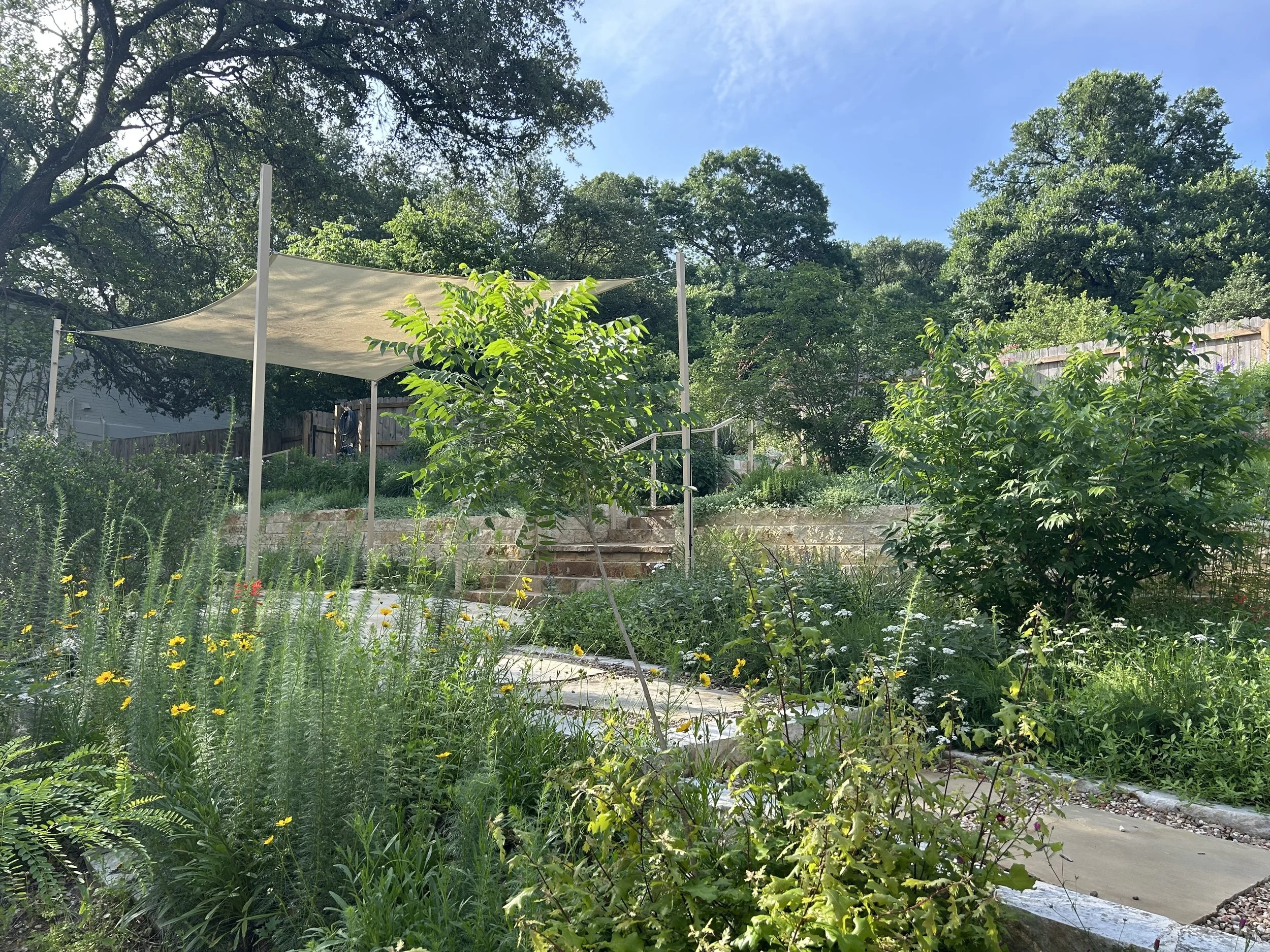After the ice storm of 2023, two mature red oaks toppled, eliminating much of the shade on the west side. Both are regrowing from the roots. While currently in bushy form, these oaks provide some much-needed shade, along with food and cover for wildlife.